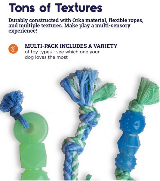 - Zestaw trzech zabawek dla każdego szczeniaka. Zapewnią wspaniałą zabawę Twojemu psu. Wytrzymały materiał powoduje, że nadają się do gryzienia i żucia. Specjalne tworzywo o ciekawych kształtach...