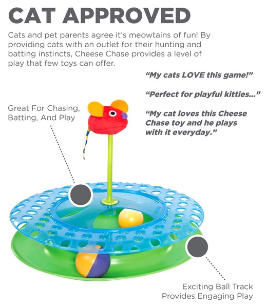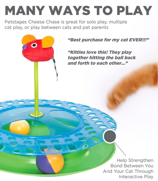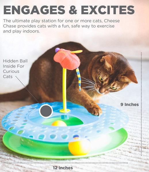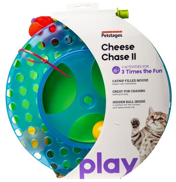 Petstages Tor Zabaw Kocia Gonitwa IITor Zabaw Kocia Gonitwa II to doskonale skonstruowana zabawka, nadajaca sie do zabawy dla wiecej niz jednego kota jednoczesnie.Zapewnia az trzy rodzaje aktywnosci potegujace radosc z zabawy: Uciekajaca po torze kolorowa pileczka bedzie niekonczacym sie wyzwaniem dla kazdego kota. Ukryta wewnatrz druga pileczka nie pozostawi obojetnym zadnego pelnego pasji kociego lowcy. Umieszczona w centrum pluszowa myszka jest wypelniona kocimietka, ktandoacute;ra koty uwielbiaja. andnbsp;Uwaga: Po rozpakowaniu zabawki nalezy zamocowac mysz na srodku cylindra.