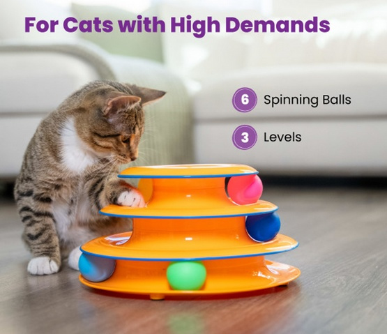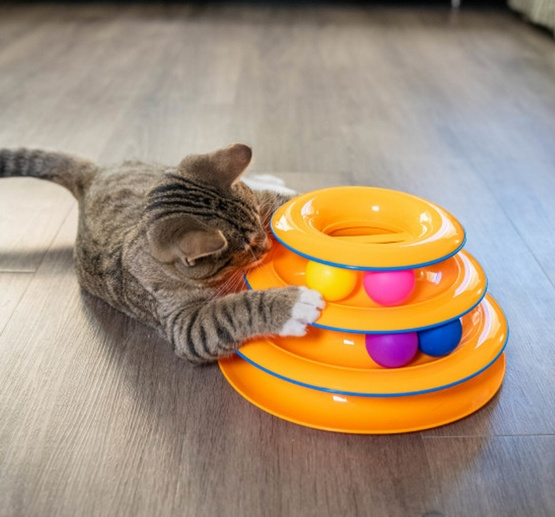 Trzy poziomy ekscytującej zabawy dostarczą mnóstwo radości podczas wspólnych harców z kocim rodzeństwem lub kumplami.