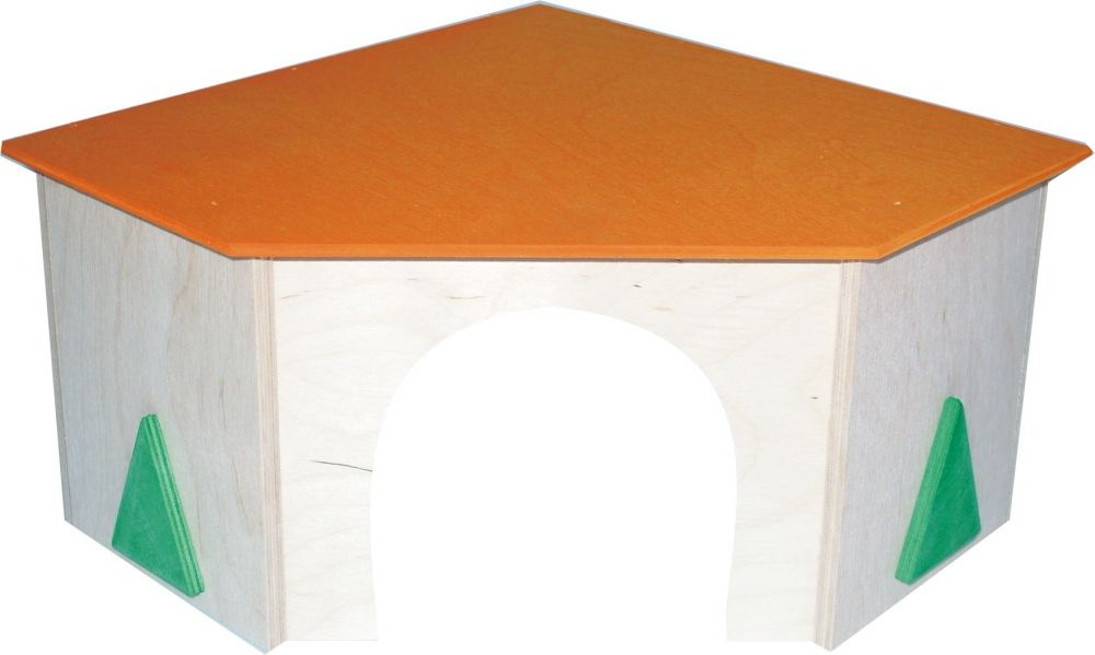 Drewniany domek wykonany z wysokiej jakości drewna, przytulny i bezpieczny dla twojego ulubieńca, znakomity nawet do podgryzania! Możesz wstawić domek do klatki swojego ulubieńca i obserwować jak cieszy się nowym mebelkiem. Domek powstał przy użyciu bezpiecznych i nietoksycznych dla zdrowia gryzonia farb i klejów.