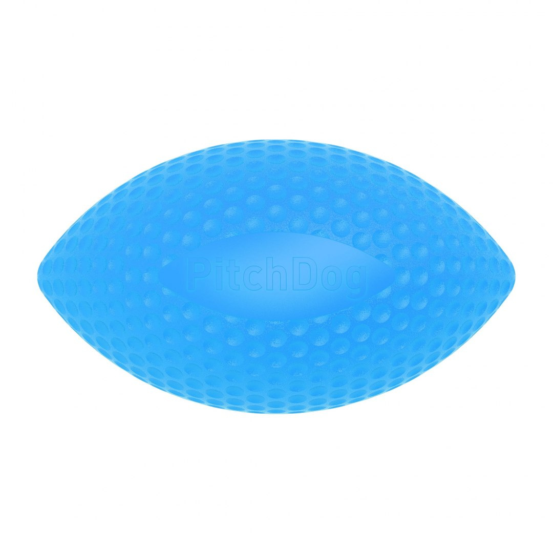 - PitchDog to niesamowita piłka, o podłużnym kształcie podobnym do piłki od rugby. Sprawdzi się u każdej wielkości psa, mniejszy złapie ją z boku w pysk, większy chwyta w całości