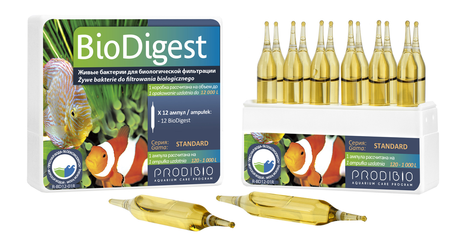 PRODIBIO BioDigest 12 ampułek oczyszczanie akw. słodkowodne i morskie