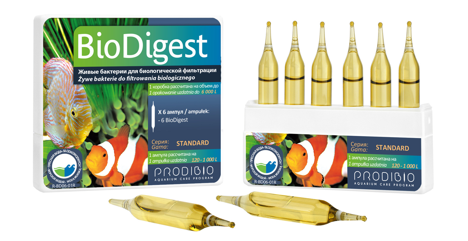 Prodibio BioDigest 6 ampułek oczyszczanie akw. słodkowodne i morskie