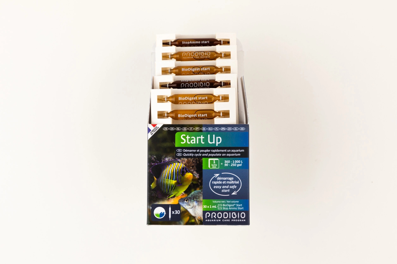 START UP zawiera STOP AMMO START oraz BIODIGEST START w jednym opakowaniu. Zestaw ułatwia Ci szybkie rozpoczęcie procesu biologicznej filtracji oraz pozwala na wprowadzenie ryb do zbiornika w ciągu kilku godzin.