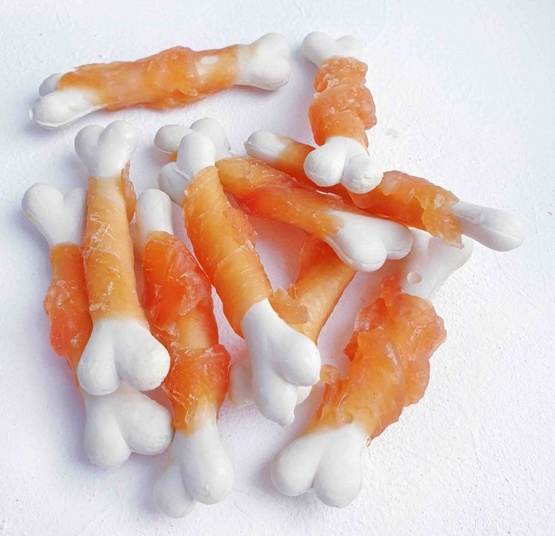 Kość owinięta mięsem kurczaka (długość ok. 7,5 cm)