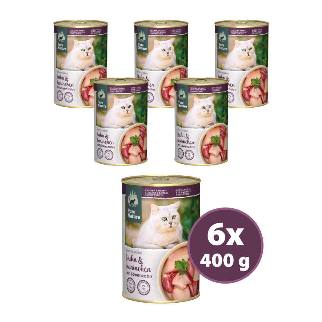 PURE NATURE CAT Huhn Kaninchen - kurczak z królikiem i mniszkiem lekarskim dla dorosłych kotów 400g