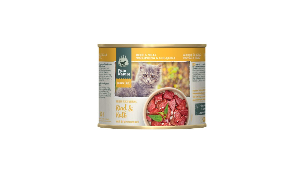 PURE NATURE CAT Junior Rind Kalb - wołowina z cielęciną, pokrzywą i olejem z krokosza barwierskiego - mokra karma dla kociąt