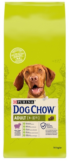- DOG CHOW ADULT z Jagnięciną Z WYSELEKCJONOWANYMI NATURALNYMI SKŁADNIKAMI Z NATURIUM, ABY WSPIERAĆ ZDROWE TRAWIENIE BEZ SZTUCZNYCH BARWNIKÓW, AROMATÓW I KONSERWANTÓW DWA KSZTAŁTY I ROZMIARY...