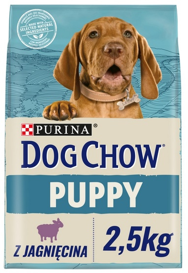 - DOG CHOW PUPPY z Jagnięciną Z WYSELEKCJONOWANYMI NATURALNYMI SKŁADNIKAMI Z NATURIUM, ABY WSPIERAĆ ZDROWE TRAWIENIE BEZ SZTUCZNYCH BARWNIKÓW, AROMATÓW I KONSERWANTÓW DWA KSZTAŁTY I ROZMIARY...