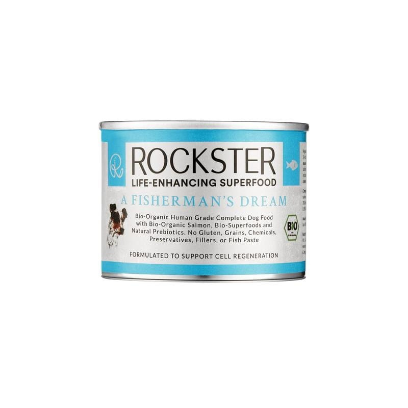 - ROCKSTER SUPERFOOD A FISHERMAN'S DREAM BIO łosoś, kalmary i małże Organiczna, certyfikowana, kompletna mokra karma dla dorosłych psów FORMUŁA NAUKOWA WSPIERAJĄCA ODNOWĘ KOMÓRKOWĄ