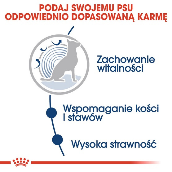 Rozwiązanie żywieniowe opracowane specjalnie dla starszych psów ras dużych (od 26 do 44 kg), powyżej 8. roku życia.