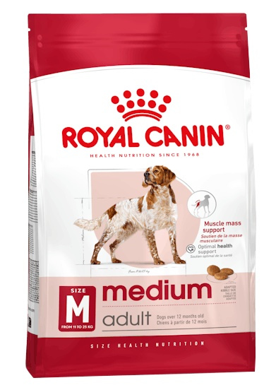 ROYAL CANIN® Medium Adult to pełnoporcjowa i zbilansowana pod względem składników pokarmowych karma, opracowana specjalnie z uwzględnieniem szczególnych potrzeb i wspierania zdrowia dorosłych psów ras średnich. Karma przeznaczona dla dorosłych psów ras średnich (masa ciała 11-25 kg, w wieku powyżej 12 miesięcy).