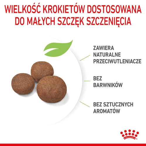 Krokiety ROYAL CANIN® Medium Puppy zostały specjalnie dostosowane do rozmiaru szczęk szczeniąt ras średnich. Krokiety są na tyle duże, aby zachęcić psa do rozgryzania karmy, co daje mechaniczny efekt czyszczenia zębów, wspomagający higienę jamy ustnej.