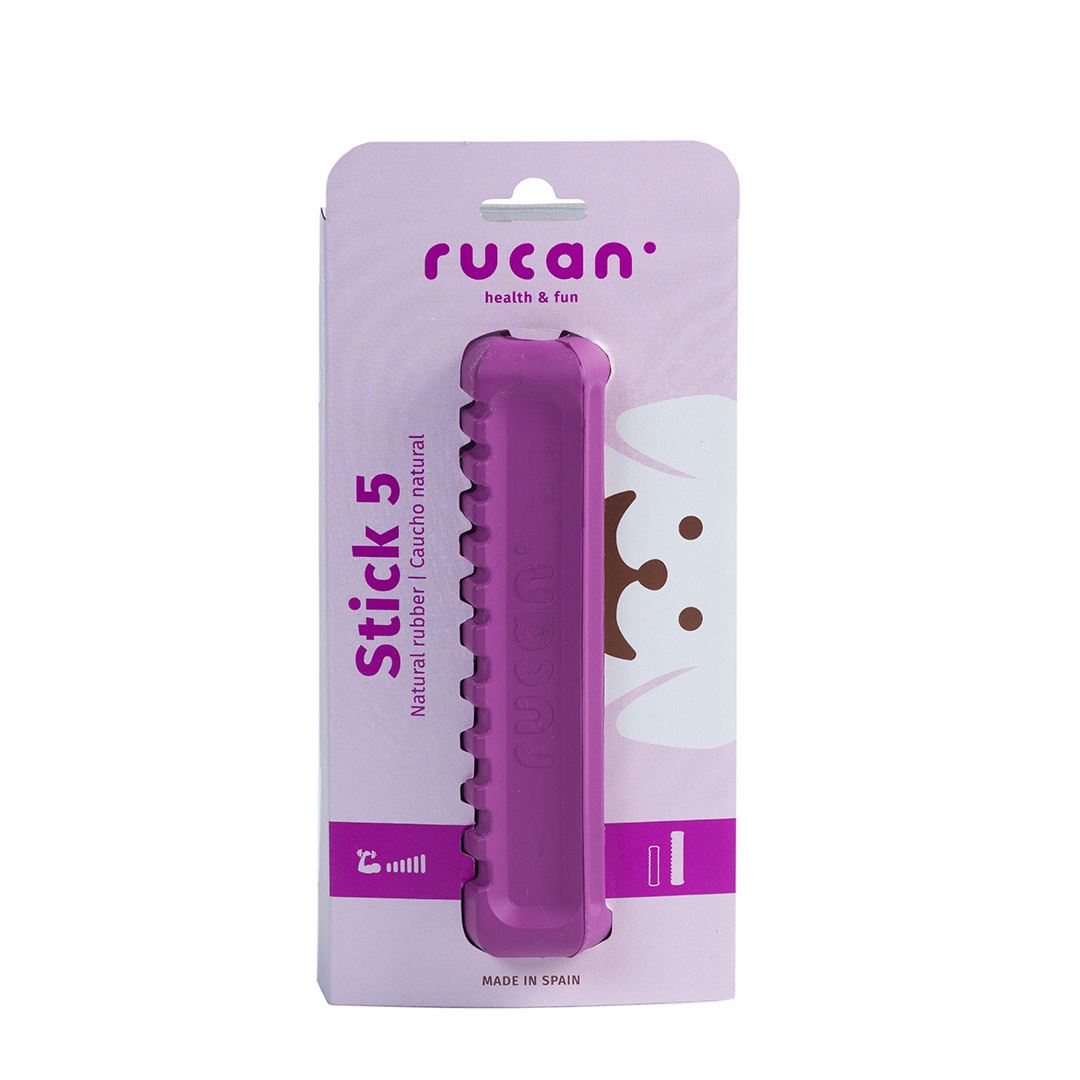 - gryzak dentystyczny – bezpieczny i trwały kauczuk naturalny, z którego wykonana jest RUCAN Stick 5 pomaga usunąć osad nazębny i masuje dziąsła.