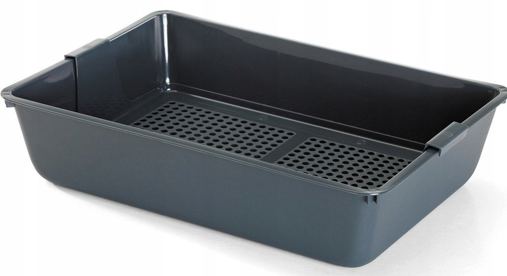 Savic | Kuweta z sitem | Szara Kuweta z wewnętrzną, zawieszaną kratką, na którą sypiemy żwirek. Przy czyszczeniu kuwety wystarczy podnieść część przesiewową, aby czysty żwirek przedostał się na dół, a żwirek zbrylony oraz odchody osadziły się na kratce. Kuweta bardzo wygodna w obsłudze. Wymiary: ⟷42cm x ⤢30cm x ↕10cm, szerokość oczka sita ok. 8mm