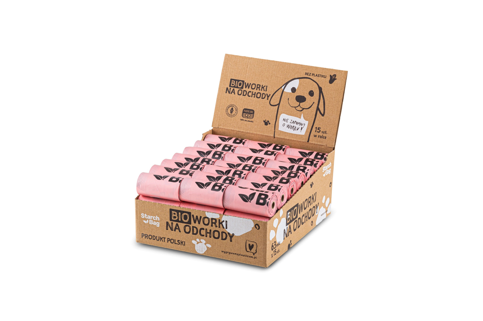 STARCHBAG Kompostowalne BIOworki na odchody 63 rolki x 15szt, kol. róż