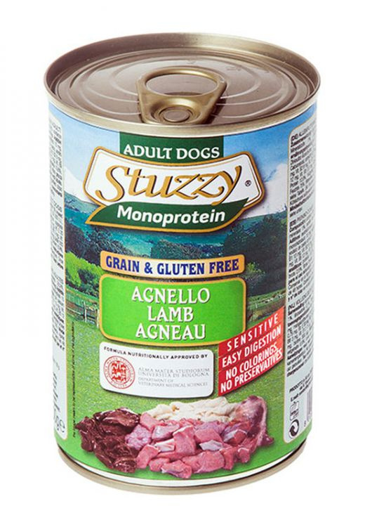 STUZZY MONOPROTEIN - jagnięcina, mokra jednobiałkowa karma dla psów. Idealna dla wszystkich psów, a zwłaszcza tych bardziej wrażliwych i z nadwrażliwością pokarmową - okazuje się być doskonałym sprzymierzeńcem w przypadku nietolerancji pokarmowych i w konsekwencji konieczność selektywnej diety. Pokarm zawiera tylko jedno źródło białka pochodzenia zwierzęcego. Zawiera wysokiej jakości mięso od wyselekcjonowanych dostawców wzbogacone tylko o najważniejsze substancje mineralne wpierające funkcjonowanie organizmu.