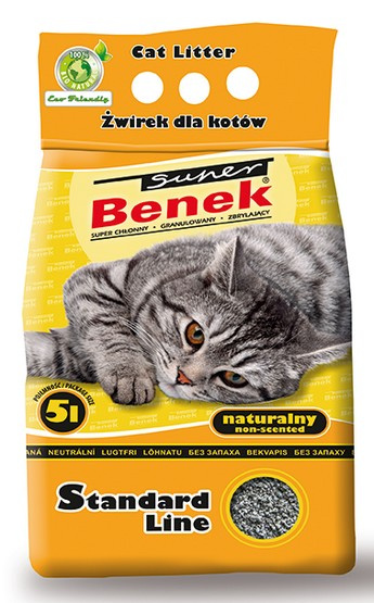 - Super Benek Naturalny to popularny żwirek higieniczny dla kotów, a także innych większych zwierząt domowych (królik, świnka morska). Seria podłoży standard charakteryzuje się grubymi granulkami, o...