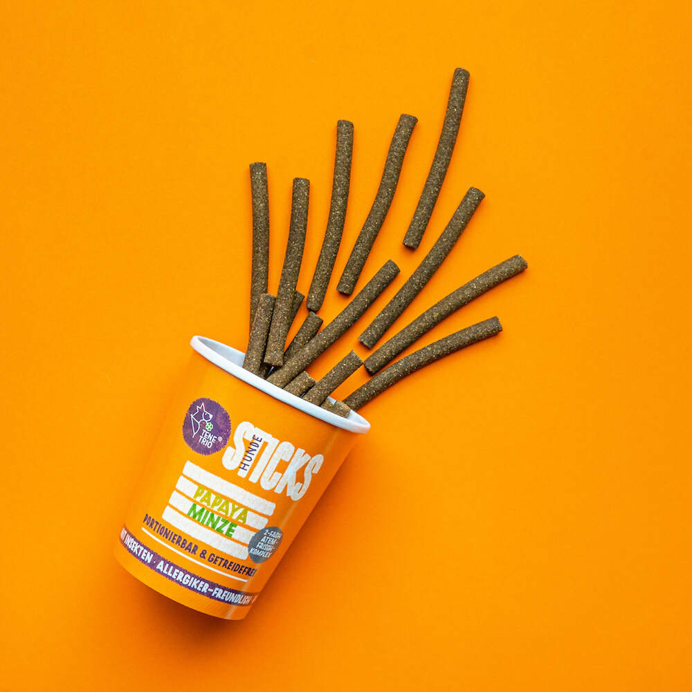 - Funkcjonalne przysmaki HUNDESTICKS z kompleksem 2-poziomowego odświeżania oddechu działają w jamie ustnej i w jelicie: papaja wspiera procesy enzymatyczne w jelicie, a tym samym wspomaga optymalne trawienie, a mięta zadba o świeży oddech.