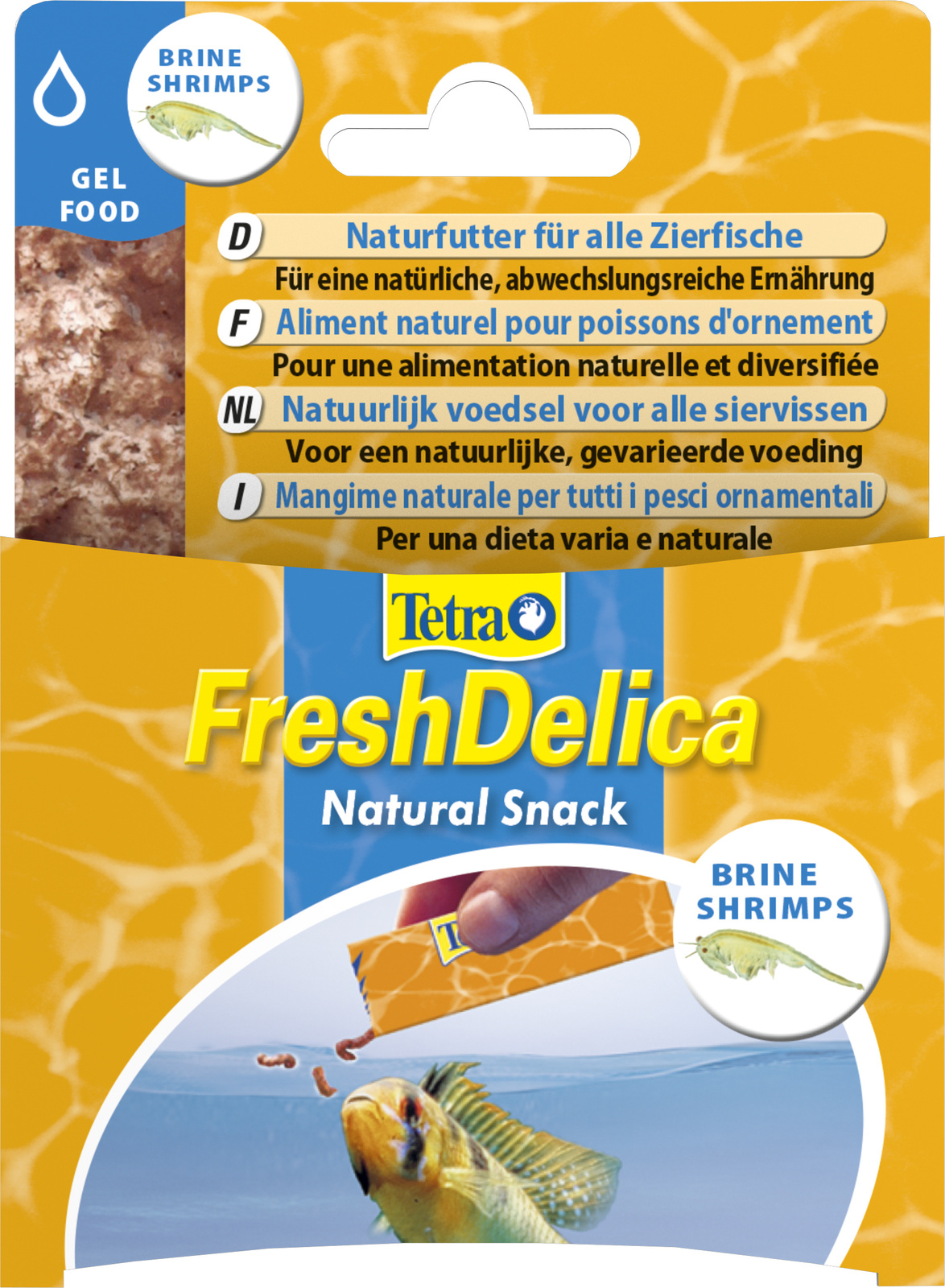 Tetra FreshDelica - Wyłącznie od Tetra, innowacyjne naturalne pożywienie w bogatym w składniki odżywcze żelu dla wszystkich ryb tropikalnych. Zapewnia zdrową, naturalną oraz zróżnicowaną dietę, radość z karmienia i interakcję z rybami. FreshDelica to doskonały pokarm uzupełniający podstawowe pożywienie TetraMin.