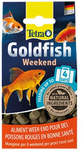 Pokarm w postaci utwardzonych pałeczek do karmienia wszystkich gatunków złotych rybek i innych ryb zimnowodnych w czasie weekendu lub urlopu.