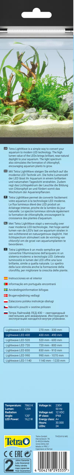 • Zestaw można łatwo rozszerzyć za pomocą rozdzielacza Tetra LightWave Splitter i dodatkowej, pojedynczej lampy led Tetra LightWave