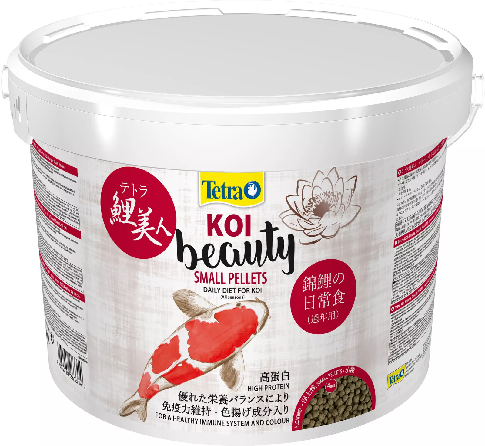 Tetra Koi Beauty to małe granulki dostarczające karpiowi koi wszystkich składników odżywczych, których potrzebują do długiego i zdrowego życia. Odpowiedni dla gatunku skład pokarmu i najwyższa jakość zapewniają najlepsze warunki dla jasnych kolorów i zdrowych ryb. Kluczowe składniki odżywcze, takie jak wysoka zawartość białka, a także witaminy i kwasy tłuszczowe omega-3 również zapewniają rybom koi wystarczającą ilość energii do zdrowego wzrostu. Dodatek beta-glukanu pomaga karpiowi koi budować odporny układ odpornościowy od najmłodszych lat, co skutecznie chroni go przed chorobami. Pokarm zawiera także węglowodany (inne kluczowe źródło energii), które są idealnie dostosowane do potrzeb karpia koi. Jednocześnie suplementy, takie jak beta-karoten (występujący w marchwi i słodkich ziemniakach), wzmacniają szczególnie żywe kolory ryb. Ponieważ wysokiej jakości składniki w znacznym stopniu przyczyniają się do dobrego przetwarzania żywności i są wysoce strawne, pomagają również utrzymać czystość wody w stawie i zapewniają dobrą jakość wody. Podsumowując, granulki Tetra Koi Beauty Small to zbilansowany pokarm dla karpi koi (powyżej 10 cm długości).