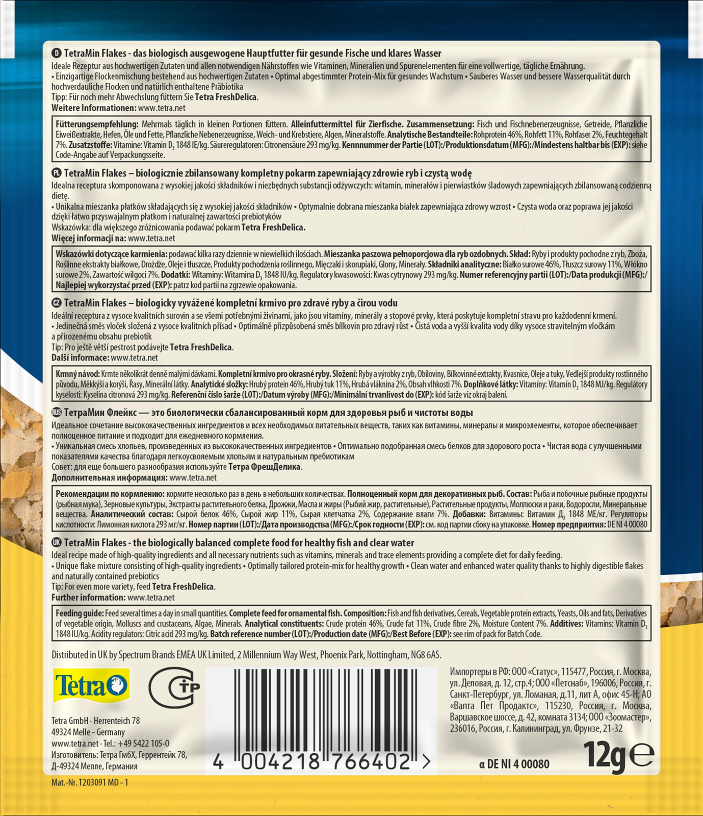 TetraMin - Starannie dobrana mieszanka składników o wysokiej wartości odżywczej oraz składników funkcjonalnych z witaminami, minerałami i pierwiastkami śladowymi zapewniająca zbilansowaną, codzienną dietę.