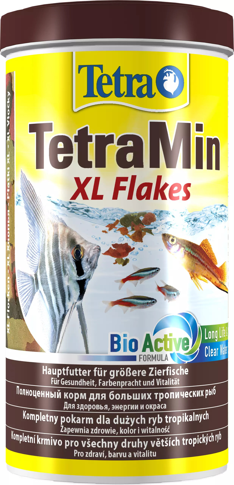 - TetraMin XL to pełnowartościowy pokarm w płatkach o wielkości odpowiedniej do otworów gębowych dużych ryb,
