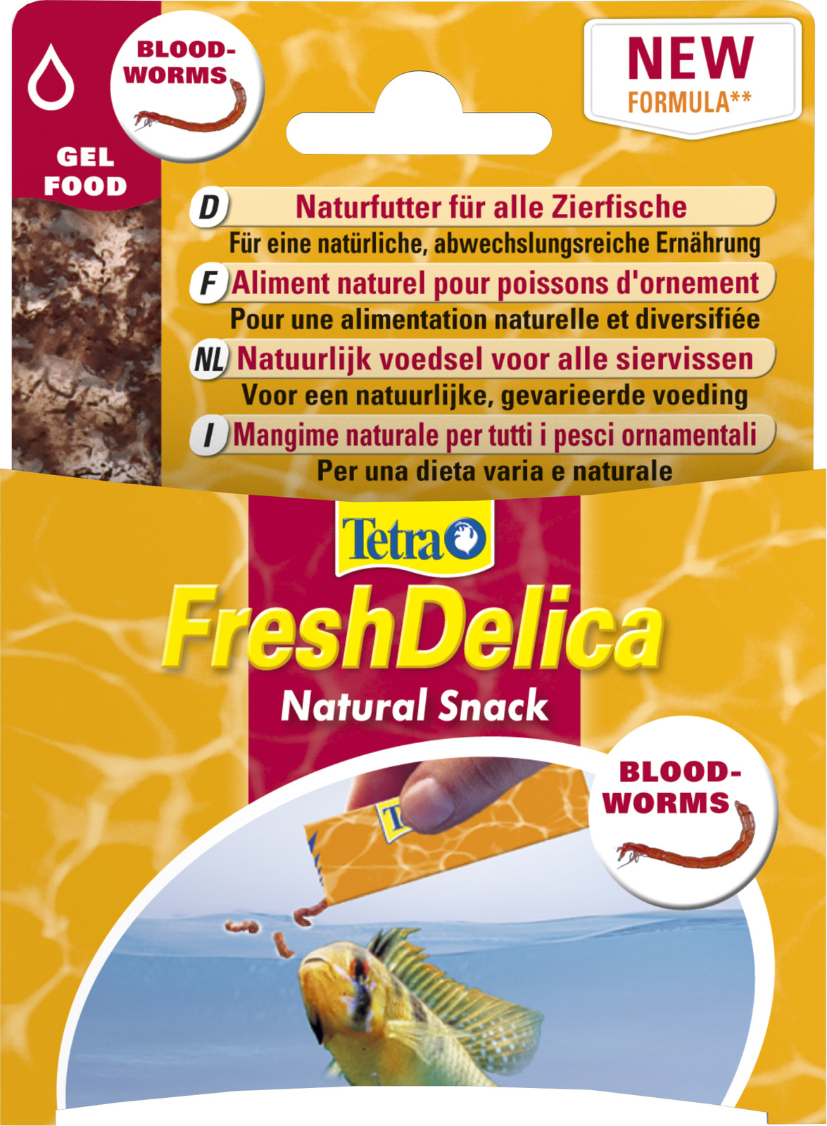 Tetra FreshDelica - Wyłącznie od Tetra, innowacyjne naturalne pożywienie w bogatym w składniki odżywcze żelu dla wszystkich ryb tropikalnych. Zapewnia zdrową, naturalną oraz zróżnicowaną dietę, radość z karmienia i interakcję z rybami. FreshDelica to doskonały pokarm uzupełniający podstawowe pożywienie TetraMin.
