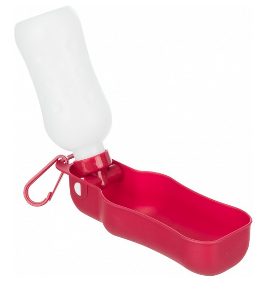 W czasie podróży również należy zapewnić psu dostęp do świeżej wody. Bidon z miską idealnie się do tego celu nadaje, gdyż pozwala na wygodny transport i podawanie wody. Doskonały na spacery i dłuższe podróże - może być transportowany na dwa sposoby: haczyk i odpinany pasek na ramię.