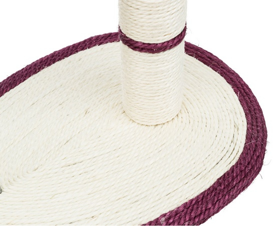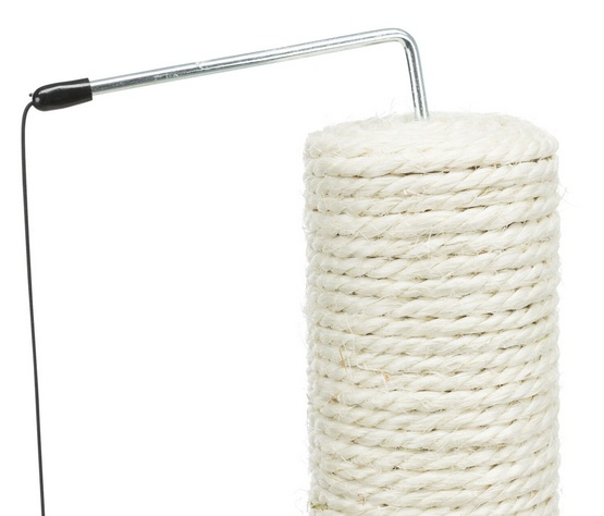 Bawiąc się w ten sposób, kot ostrzy sobie pazurki o podstawę drapaka lub o pionowy pieniek.