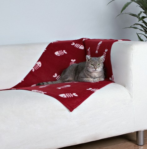 Trixie Koc 100x70cm Bordowy w białe ryby [37193]