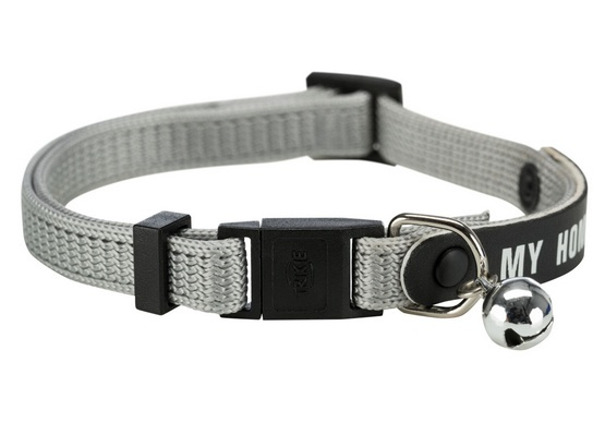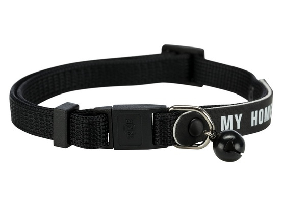 - Trixie obroża My Home dla kotów. Jest w pełni regulowana. Materiał: nylon. Dołączony dzwoneczek i nalepka adresowa. Różne kolory - wysyłane losowo.