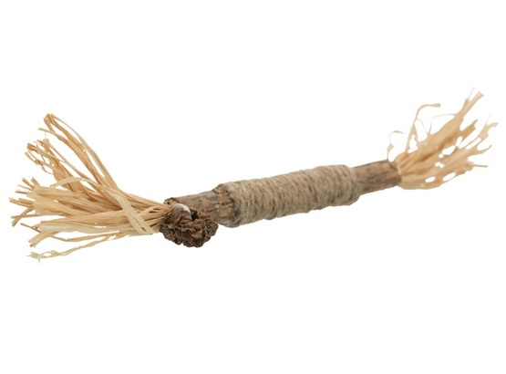 Zabawka dla kota składająca się z patyczka i owoców matatabi oraz jutowego sznurka i frędzli z rafii. Dostarczy kotu świetnej zabawy, a podczas gryzienia również wspomaga higienę zębów.