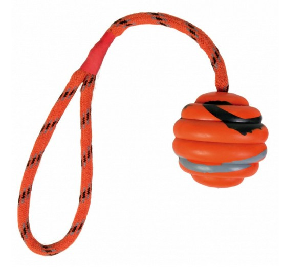 - Piłka kauczukowa z przymocowanym sznurem. Średnica piłki 6 cm, długość liny 30 cm. Zabawka idealna do rzucania, aportowania, przeciągania siłowego.