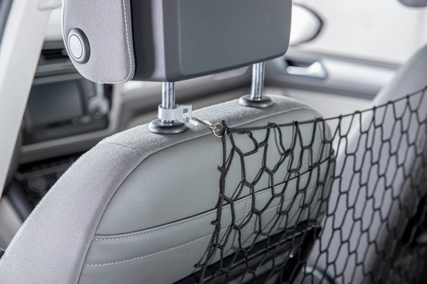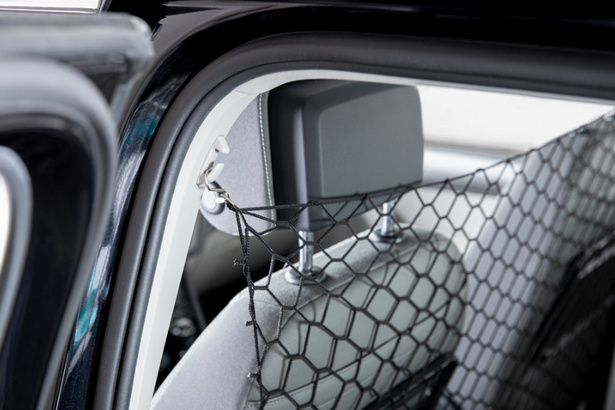Siatka odgradzająca kierowcę i pasażerów od psa.