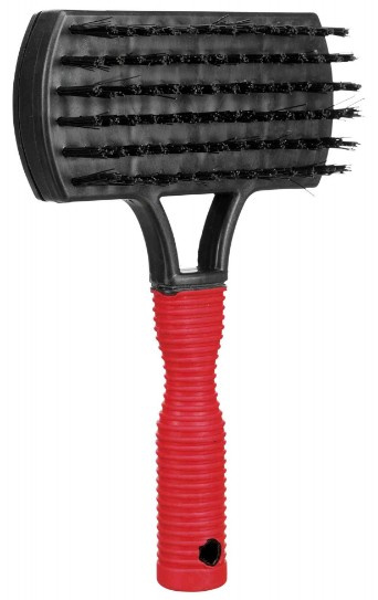 Szczotka plastikowa dwustronna z antypoślizgowym uchwytem. Jedna strona szczotki to bezpieczne druty, a druga: sztuczne włosie.