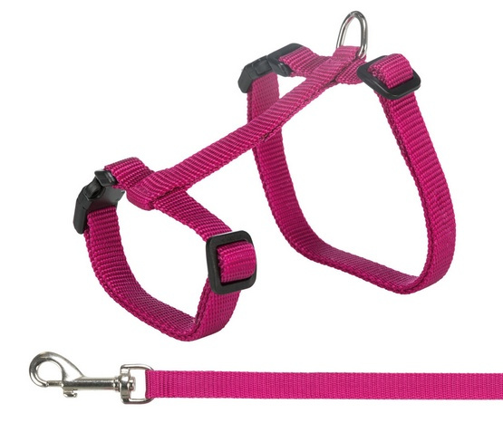 - Trixie Szelki ze smyczą dla dużego kota wykonane z nylonu w pełni regulowane z klamrami zatrzaskowymi różne kolory - wysyłane losowo wymiary: szelki: 34 - 57 cm / 13 mm smycz: 1,20 m