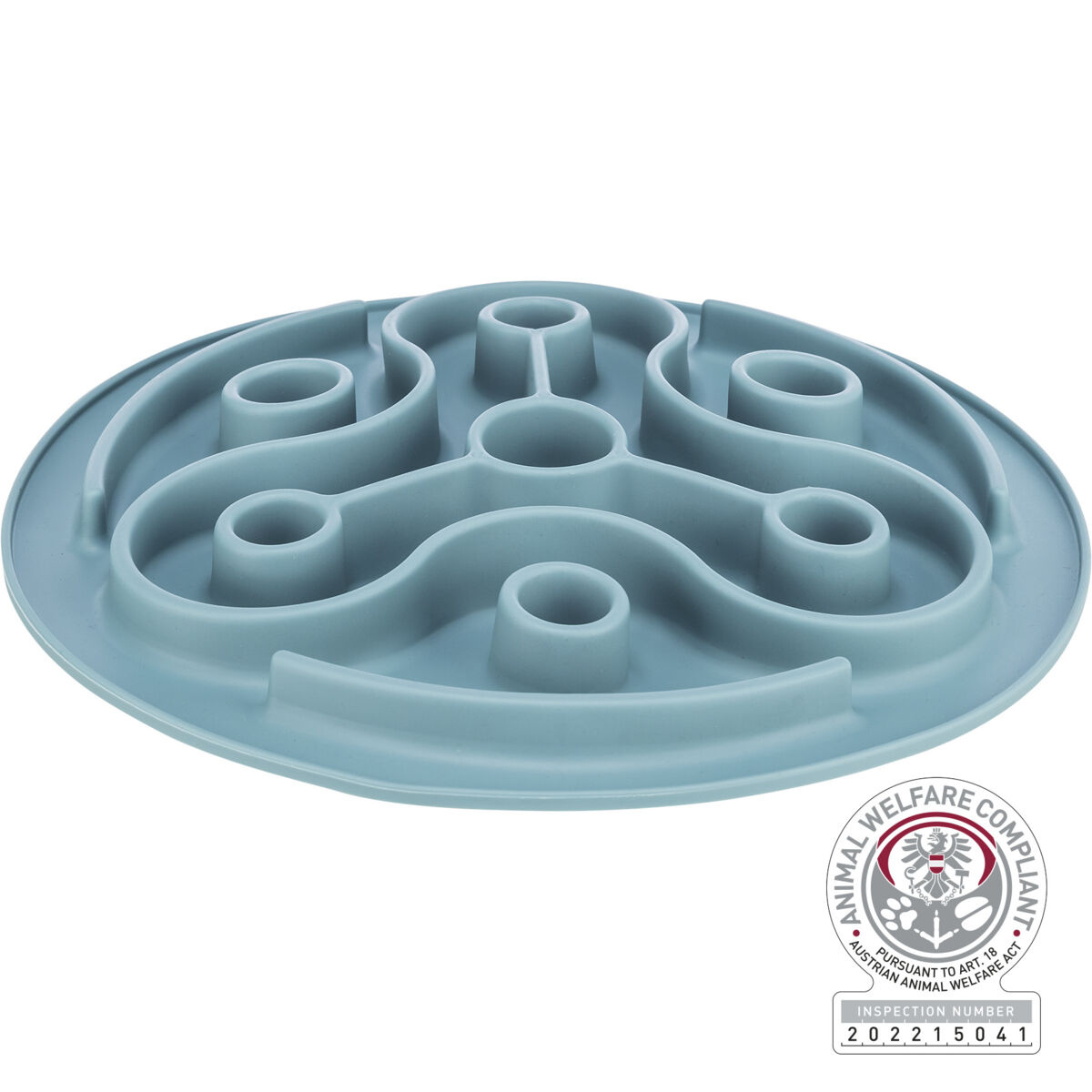 Slow Feeding Mata do karmienia to doskonałe rozwiązanie dla psów, które jedzą zbyt szybko. Mata zapobiega łapczywemu połykaniu pokarmu, co jest ważne dla prawidłowego trawienia. Jest odpowiednia do wszystkich rodzajów karmy i wykonana z miękkiego materiał