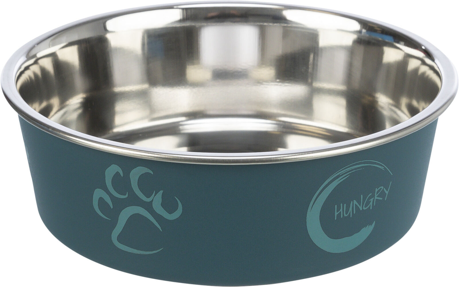 Miska ze stali nierdzewnej z plastikowym pokryciem, którego nie ślizga się dzięki gumowej podstawie. Doskonała do codziennego użytku dla psów.