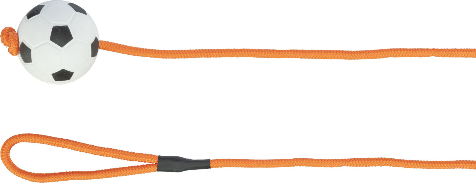Futbolówka na sznurku to zabawka przeznaczona dla psów, wykonana z wytrzymałej gumy piankowej, która zapewnia długotrwałą zabawę. Sznurek ułatwia rzucanie i chwytanie futbolówki przez psa, co sprzyja aktywności fizycznej i zapewnia mnóstwo frajdy podczas