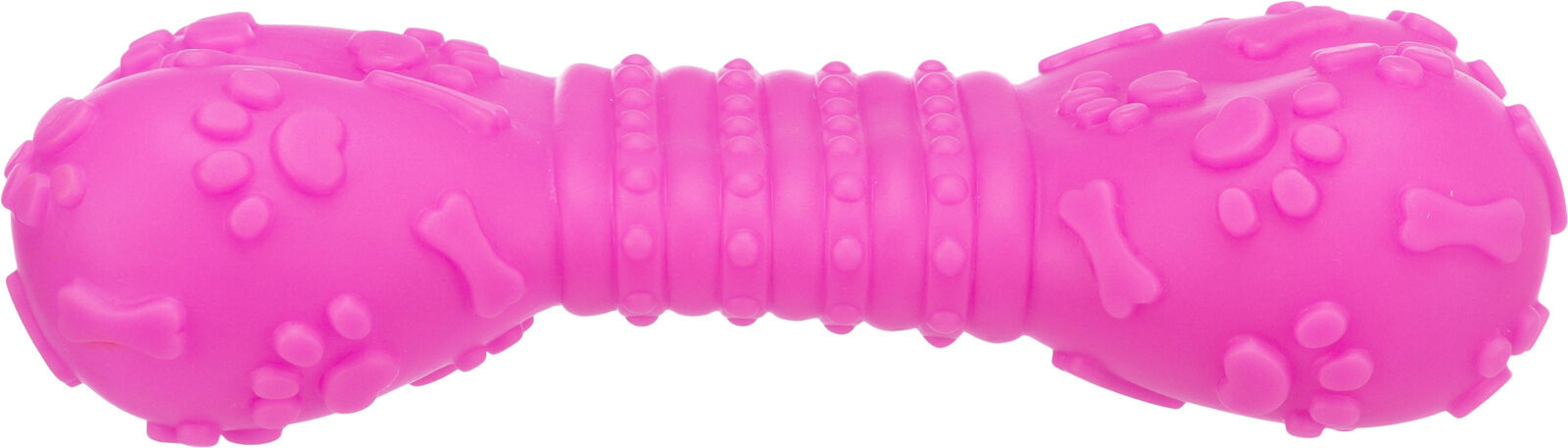 Kości zabawka dla psa wykonana z winylu, która dodatkowo wydaje dźwięki, co sprawia, że staje się ciekawym i atrakcyjnym elementem zabawy dla czworonoga. Zapewnia psu długotrwałą rozrywkę oraz pomaga w spełnianiu instynktownych potrzeb.