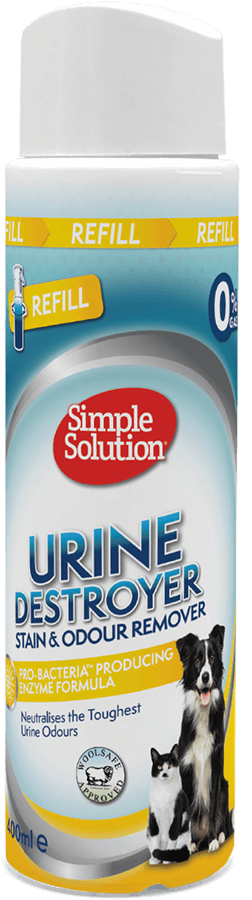 URINE DESTROYER REFILL - WKLADandnbsp;andnbsp;400mlZawiera wylacznie wklad Nowa technologia natrysku z nasza sprawdzona formula Stain andamp; Odor z certyfikatem Woolsafe Specjalnie opracowany do rozkladania bialek moczuandnbsp; Usuwa plame z moczu i trwale usuwa zapach moczu, zamiast tylko go maskowac Bezpieczny w uzyciu na dywanach, tapicerce, twardych powierzchniach, cemencie i wszystkich innych wodoodpornych powierzchniach Bezpieczny w uzyciu w poblizu zwierzat domowych i dzieci, jesli jest uzywany zgodnie z zaleceniami Ekologiczna formula na bazie wody z 0% gazu Ciagly strumien drobnej mgielki do szybkiego, latwego i randoacute;wnomiernego pokrycia duzych powierzchni Bez propelenta i 0% gazu. Funkcjonalnosc bez potrzeby stosowania gazandoacute;w pednych, takich jak aerozol Spryskiwanie 360anddeg; w trudno dostepnych miejscach. Do gandoacute;ry nogami, pod katem andmdash; uzywaj w dowolnym kierunkuandnbsp; Ergonomiczna konstrukcja andndash; mniejsze zmeczenie dloni podczas pompowania w porandoacute;wnaniu ze standardowymi wyzwalaczamiandnbsp;Przed uzyciem przetestuj w malo widocznym miejscu i pozostaw do wyschniecia, aby przetestowac odpornosc kolorandoacute;w. W przypadku drewnianych podlandoacute;g nalezy postepowac zgodnie z zaleceniami sprzedawcy. Nie stosowac na powierzchniach skandoacute;rzanych.andnbsp;andnbsp;Instrukcja uzycia:1. Zdejmij blokade umieszczona pod spustem atomizeraandnbsp;2. Napelnij atomizer pompujac trzy razy przed pierwszym uzyciem. Pociagnij maksymalnie spust aby uzyskac 3 sekundowyandnbsp;strumien mgielki.3. andnbsp;Zaaplikuj preparat na zabrudzone powierzchnie, czynnosc powtandoacute;rz co najmniejandnbsp;3 razy4. Odczekaj 10 minut i osusz nadmiar wilgoci5. Odczekaj 24-48h do calkowitego wyschniecia, a nastepnie dokladnie odkurz w przypadku powierzchni miekkich. Po wyschnieciu plama i zapach zniknalandnbsp;Instrukcja wymiany wkladu:1. Zdejmij jednorazowa nakretke z butelki uzupelniajacej2. Przykrec atomizer wielokrotnego uzytku do butelki uzupelniajacejandnbsp;3. Przed pierwszym uzyciem trzykrotnie nacisnij spustandnbsp;