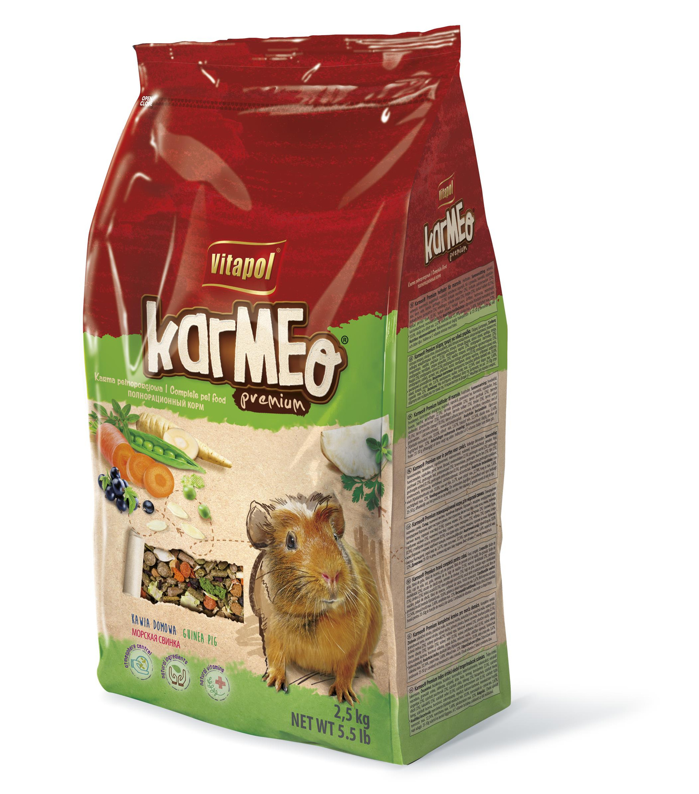 Mieszanka podstawowa dla kawii domowej, odpowiednio zbilansowana, w której ilość zbóż została zmniejszona na rzecz różnego rodzaju granulatów i witaminizowanych ekstrudatów, których różnorodność zapewnia dostęp do szerokiej gamy składników pokarmowych. Granulat z siana utrzymuje poziom włókna surowego, które jet niezbędne do prawidłowego funkcjonowania układu pokarmowego kawii domowej. Granula z lucerny Poza tym mieszanka wzbogacona warzywami (marchew, burak, pasternak, seler, koper) i owocami zasobnymi w witaminę C dla zapewnienia jej odpowiedniej ilości w codziennej diecie świnek morskich. Owoc porzeczki dostarcza witaminę C, K, P oraz mikroelementy: bor i jod, kwasy organiczne oraz pektyny. Dietetyczny seler oczyszcza organizm z toksyn, działa przeciwzapalnie, polepsza pracę serca, jest bogaty w przeciwutleniacze, czyli witaminę C i E.
