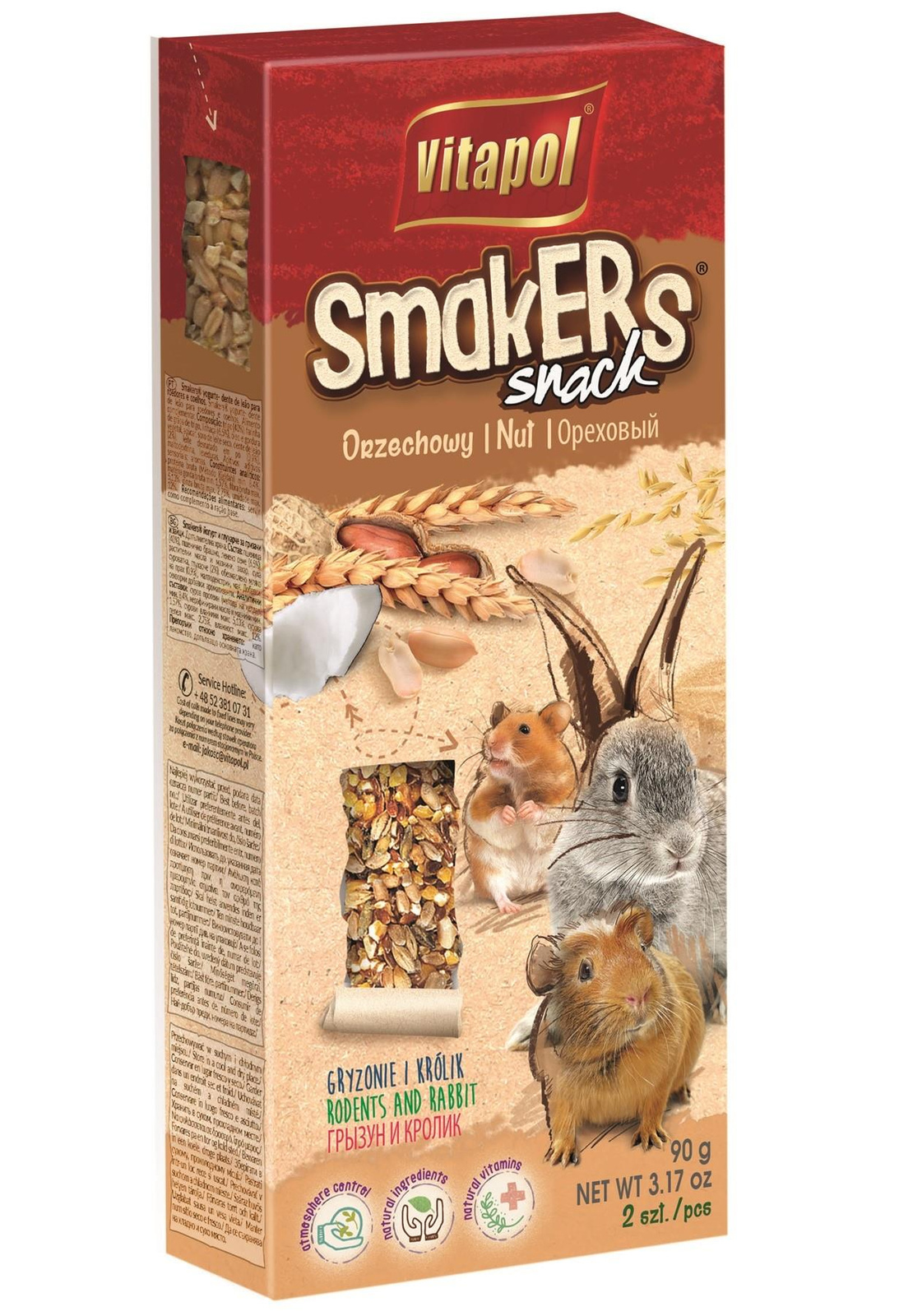 - odpowiednia twardość zapewnia, że oprócz wartości odżywczych Smakersy Vitapol dbają również o regularne ścieranie zebów u gryzoni i królików