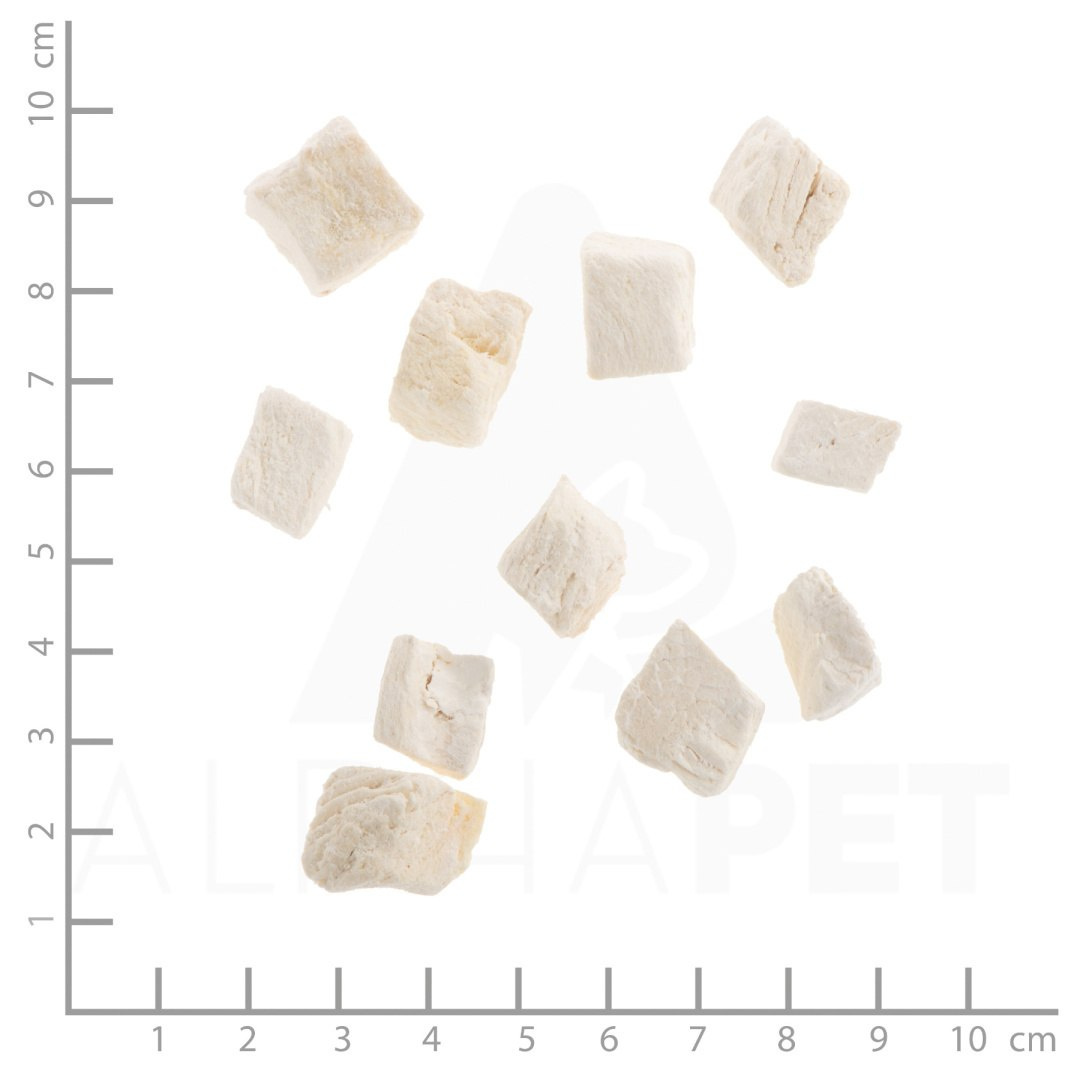 Delikatnie liofilizowane i wyjątkowo smaczne, w kształcie kosteczek. Ta pyszna przekąska powstaje ze świeżego filetu z kurczaka, który jest delikatnie liofilizowany, aby zachować naturalny smak i wszystkie ważne składniki odżywcze. Przysmaki przygotowane z miłością, są prawdziwą uczta dla kocich smakoszy.