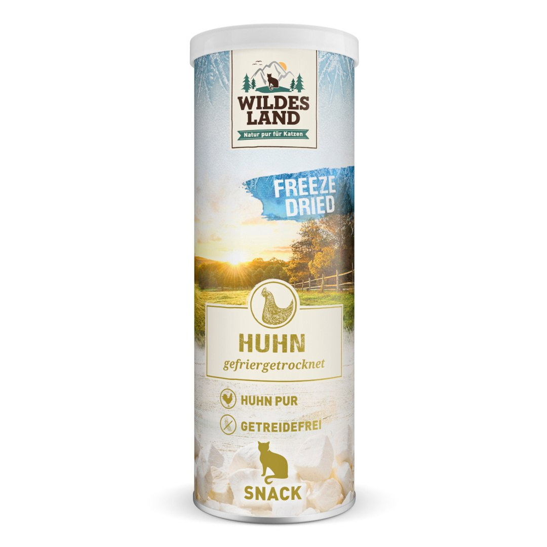 WILDES LAND przywiązuje szczególną wagę do wysokiej jakości, odpowiedniej dla gatunku, naturalnej karmy i przysmaków dla kotów. Dlatego opracowana została zdrowa przekąska dla kotów wykonana wyłącznie z naturalnych składników. Liofilizowane przysmaki z kurczaka składają się w 99% z mięsa kurczaka. Mięso najpierw kroi się w kostki i zamraża. Następnie ciecz jest usuwana za pomocą próżni w specjalnym procesie liofilizacji. W ten sposób wszystkie składniki odżywcze zostają zachowane. Dzięki temu Twój kot otrzyma wysokiej jakości białka i ważne składniki odżywcze, nawet gdy dostanie małe przekąski. Ponieważ przysmaki nie zawierają żadnych sztucznych składników, są nie tylkowyjątkowo smaczne, ale także wyjątkowo dobrze tolerowane.