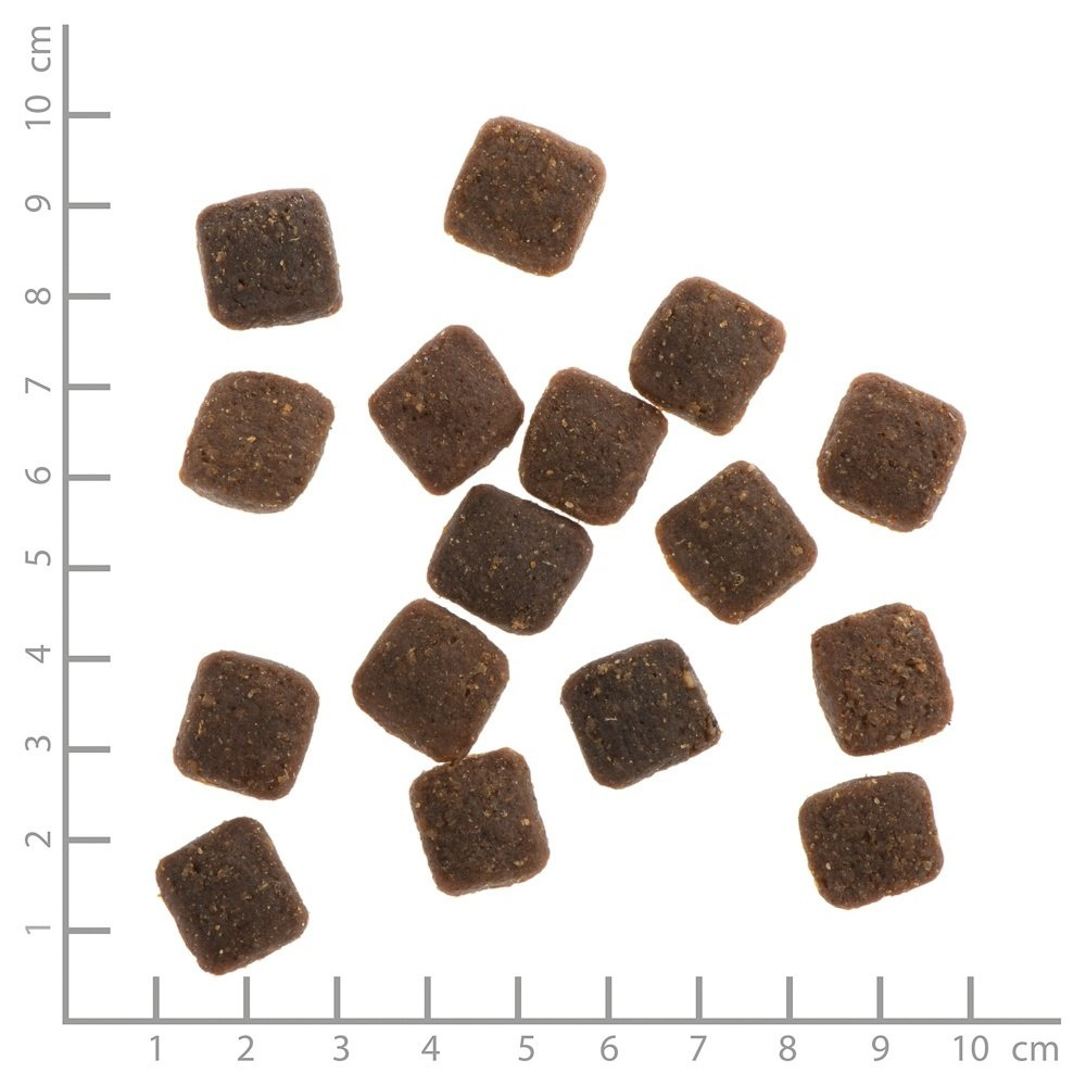 - Delikatne miękkie granulki - dzięki specjalnemu procesowi produkcji i recepturze soczyste i miękkie granulki są chętnie zjadane prze psy. Szczególnie polecane dla psów mniejszych ras, bardzo wybrednych i starszych psów, które mogą mieć problemy z uzębieniem.