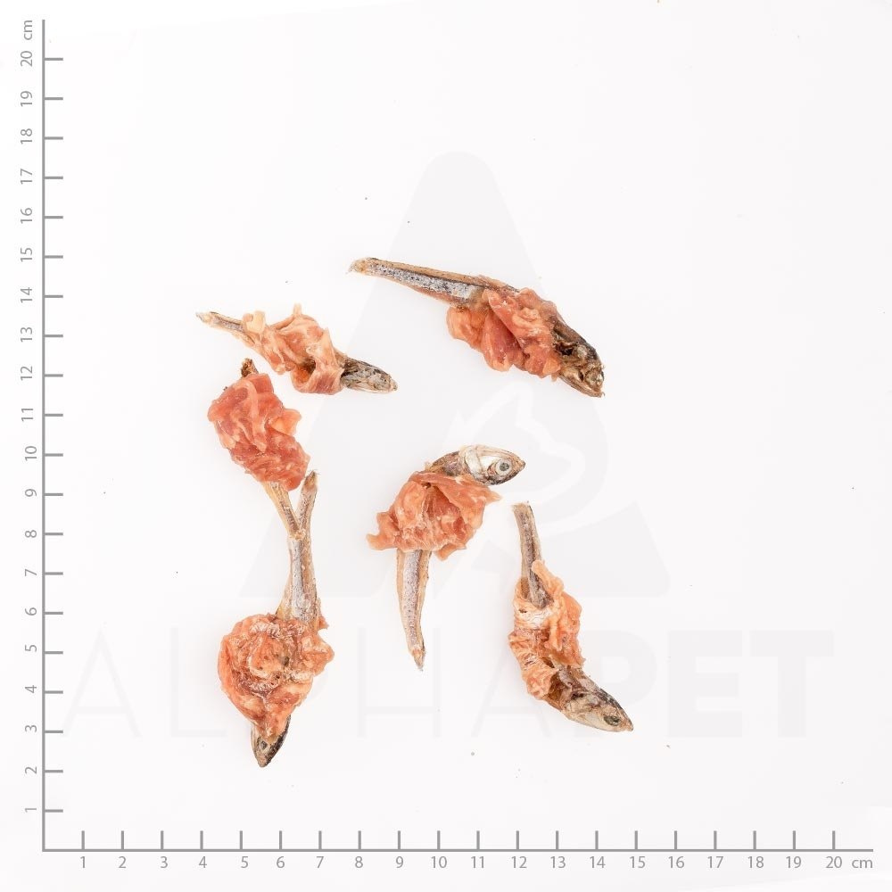 Niskotłuszczowy filet z piersi kurczaka owinięty jest wokół małej rybki i delikatnie suszony powietrzem. To pyszny i aromatczny przysmak, który jest doskonale akceptowany przez psy i koty. Małe kawałki tej przekąski są idealne jako nagroda i dają Ci możliwość głębszego wzmocnienia bliskiej więzi między Tobą a pupilem. Wyprodukowane bez zbóż, cukru, sztucznych dodatków, konserwantów.